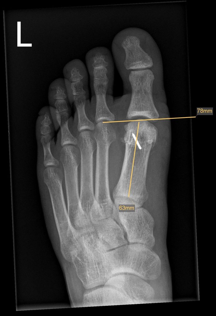 (Arthrose Gelenkspalt mehr als 50%, langer erster Mittelfußknochen)